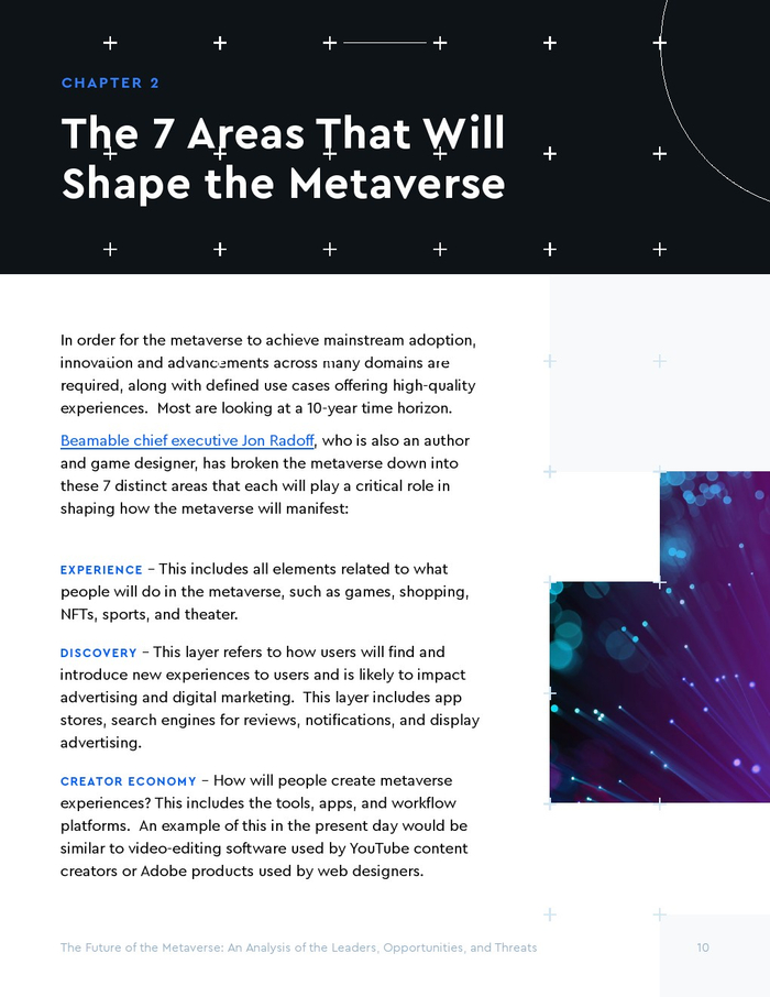 为了使元宇宙成为主流,需要跨多个领域进行创新和进步,以及提供高质量体验的定义用例。