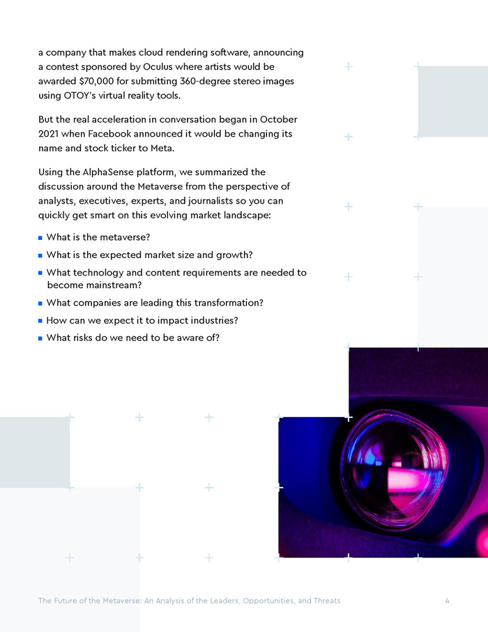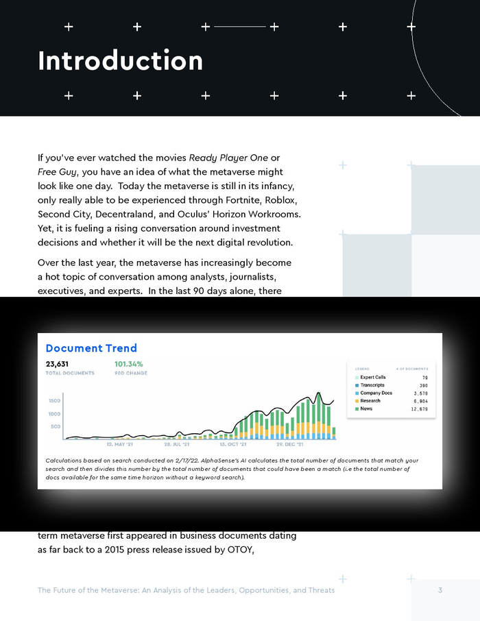 AlphaSense发布了新报告“元宇宙的未来”。已发表的提及元宇宙的文档增长了101.34%。