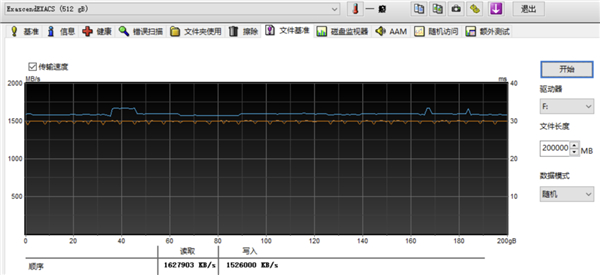 在ET现有硬件配置下取得的200GB持续读写成绩,可以看到写入曲线接近直线。