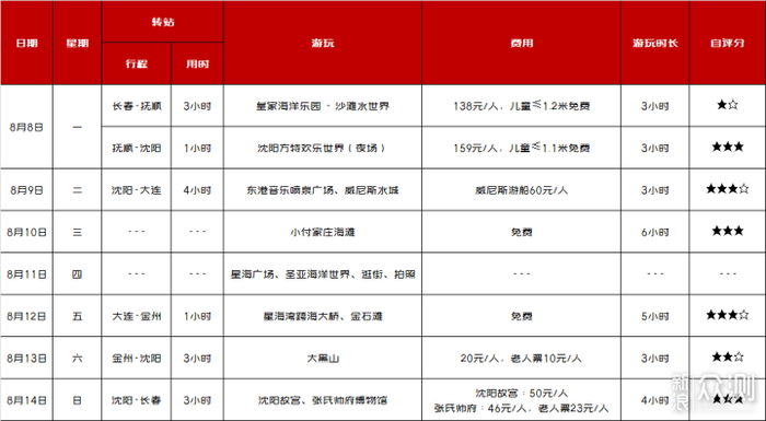 沈阳是我和老婆相识的地方,大连是老婆上大学的地方,能有七八年没回去过了,这次打算带着父母、孩子一起来一趟追忆之旅。