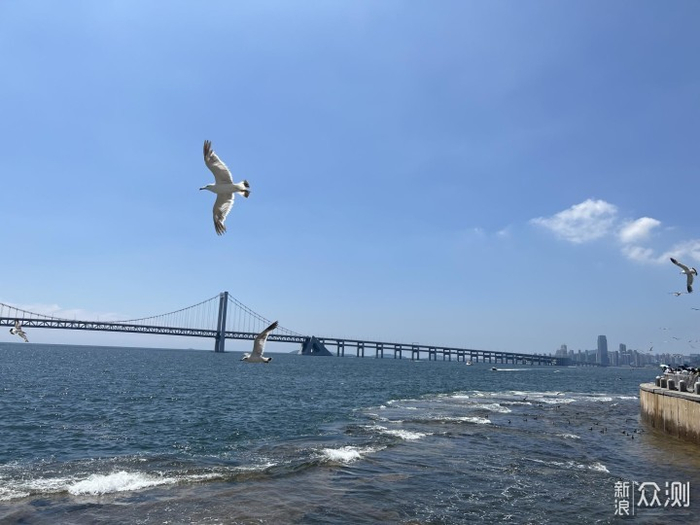 早上起来出发去金石滩之前,先打卡了跨海 大桥,全长6800m,