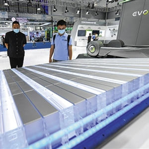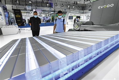 在2022世界动力电池大会绿色低碳出行展览会上,参观者了解动力电池相关情况。新华社记者 王曦 摄
