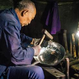 ▲ 历经十二道工序,十八遍火候,在一千度左右的高温锤炼,经受上万次锻打,方得一口好的章丘铁锅。(摄影王雅洁)