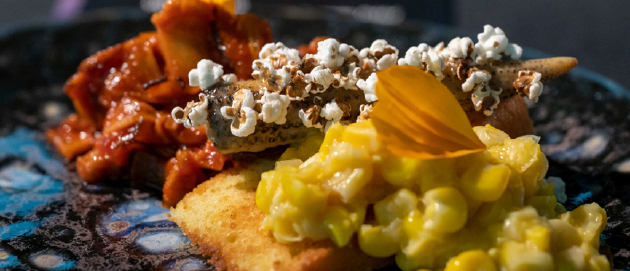 特制的玉米菜肴提醒人们森林正在遭到滥砍滥伐。用鱼精肉汤浇汁的蔬菜海藻沙拉向人们暗示海平面正在上升。最后端上来的主菜是鸡肉块配枫叶华夫饼,外加一个中式包子。此时,客人们放下酒杯,小心翼翼地将鸡肉切成小块,细细品尝。这道鸡肉主菜的价格远远超过了标准的鸡肉快餐的价格。但是,并没有任何一只鸡因为这道菜的制作而死于非命——因为所用的鸡肉是由一家食品独角兽公司生产的干细胞制成。