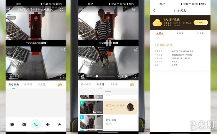 配置上,360可视门铃5max双摄版主摄像头400万像素,分辨率2560*1440,辅助摄像头100万像素。还配备了5米超清红外夜视,可以根据环境光线变化自动切换白天黑夜模式。同时,内置了9000mAh超大电池,官方宣称续航能达到6个月。