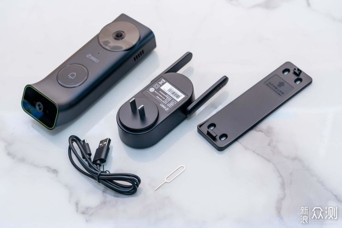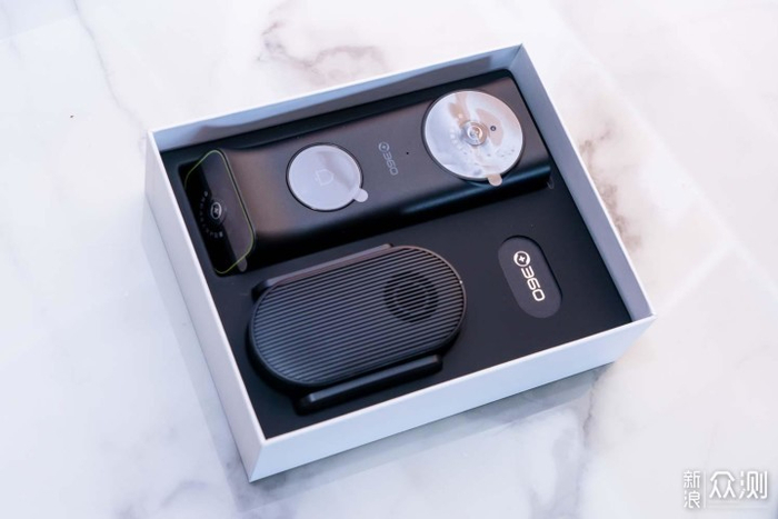 打开包装盒,360可视门铃5 Max双摄版,一眼就可以看到门铃主机一个,信号基站一个。