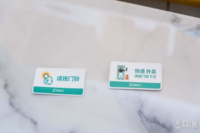 同时厂家还附送了2张贴纸,可以贴在相应的门口,用来指示访客按门铃或是放快递,需要的时候可以用上,挺方便的。