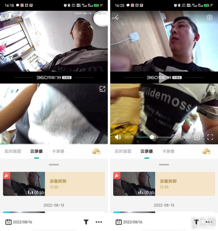 即使我正常取下来充电,但这个录制的视频也完整地记录下来了我的人脸和动作。可以看到录制的画面是非常清晰的,毕竟它采用的是2.5K分辨率的双摄像头,清晰度可以得到保证。不管是看家还是看东西,都挺清晰的。