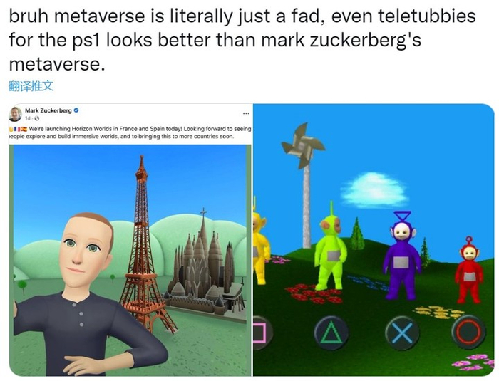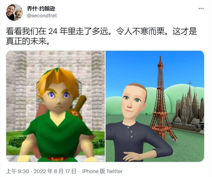 Twitter 上有不少梗图拿出古董级游戏,对这张 2022 年‘元宇宙’自拍冷嘲热讽。