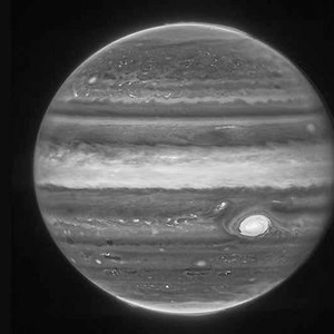 图像由带有专门红外滤光片的近红外相机拍摄,由于红外线对人眼是不可见的,因此这些光被映射到可见光谱上,以突出木星的特定细节。