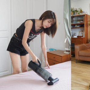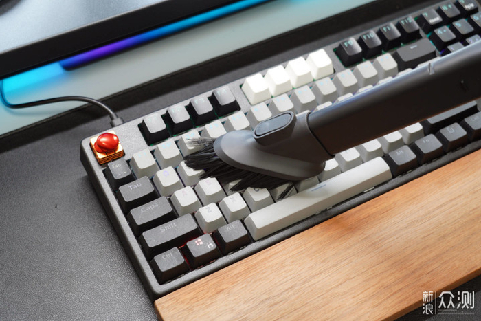 ▼换上软毛刷头可以用来清洁各种电子产品,由于这次的风道是垂直的,使用时噪音的确小了很多,此外小巧的机身拎起来的确很轻松,使用体验要比传统的枪式握把更加舒适。