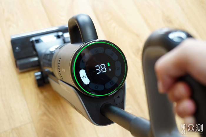 ▼除了创新的双滚刷和吸尘模式之外,操控体验方面M13也继续延续了前几代的优良传统,比如这块机身顶端的LCD大屏,可以实时显示7种模式以及当前电量,配合上语音播报空能,上手难度较低,交互体验方面还是很让人省心的。