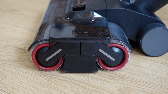当我向前推时,前方的滚刷会给机身带来助力,向后拉时,后方的滚刷又发挥了作用,跟单刷头的洗地机相比,向前行进的助力实际上会被后方滚刷抵消掉一部分,不过向后拉的那一下,感觉会比以前轻松上不少。