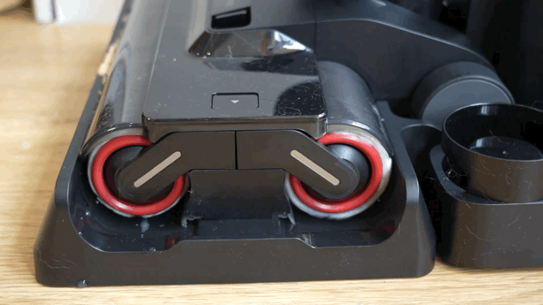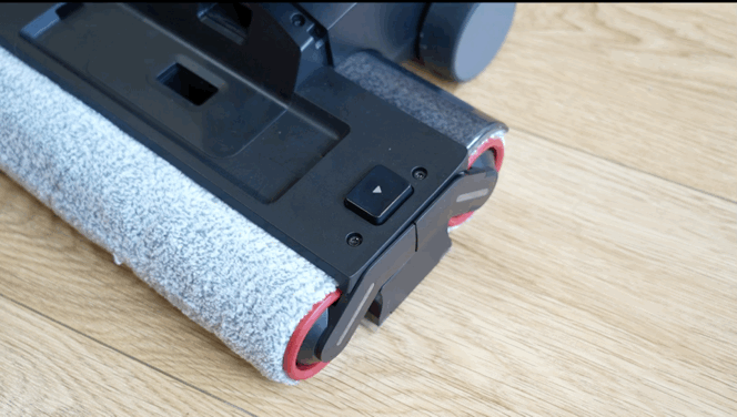 ▼而追觅这次是真的把刷头做到的两边都是极窄边框,它的刷头两侧只有两片薄薄的卡扣,用来固定滚刷,按下刷头旁边的按钮,卡扣就会自动弹出,方便拆卸。