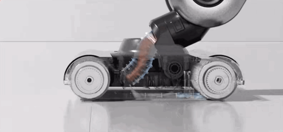 所以我也仔细观察了刷头的旋转方向,通过延迟摄影可以发现,M13的滚刷在工作时其实是同时向内旋转,这样就能各自给前进和后退带来助力。