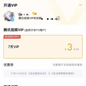 记者下载“微视”App发现,腾讯视频通过“微视”App引流,有3元7天VIP、首3月每月15元限时特价活动,一旦选择开通即默认“确认协议并立即续费”,并不需要用户勾选相关协议。
