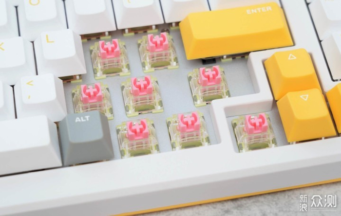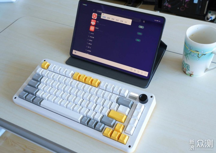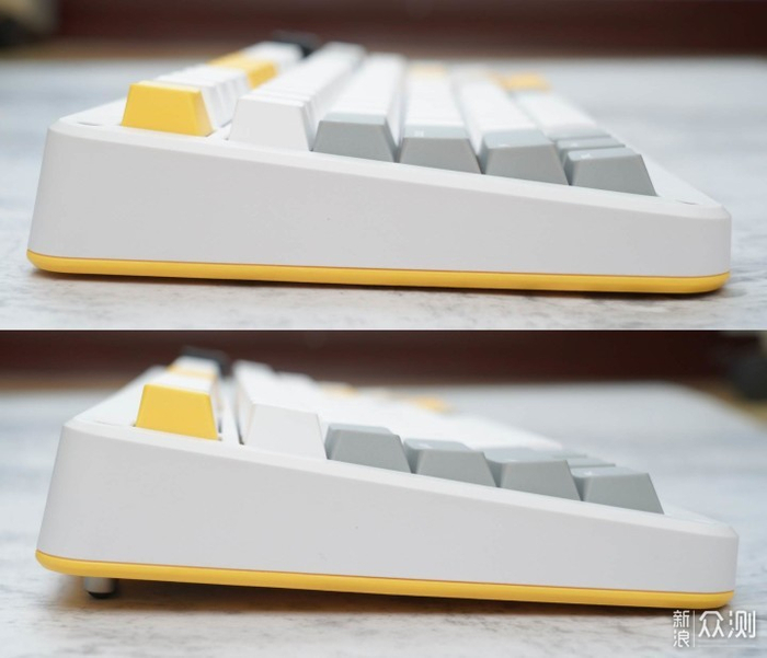 键盘以白色为基色,适当位置搭配黄色和灰色,是简洁明快的风格,有眼前一亮的感觉。