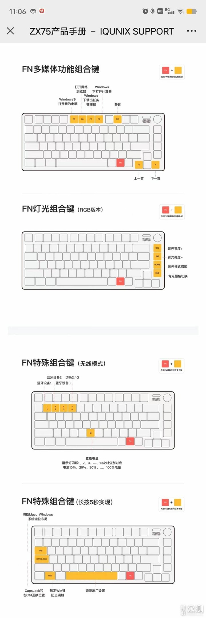 Fn+4即可切换到该模式,非常方面。比较贴心的是,IQUNIX ZX75重力波自带2.4G接收器,给好评。像我之前有的三模键盘没配2.4G接收器,这个功能几乎就荒废了。
