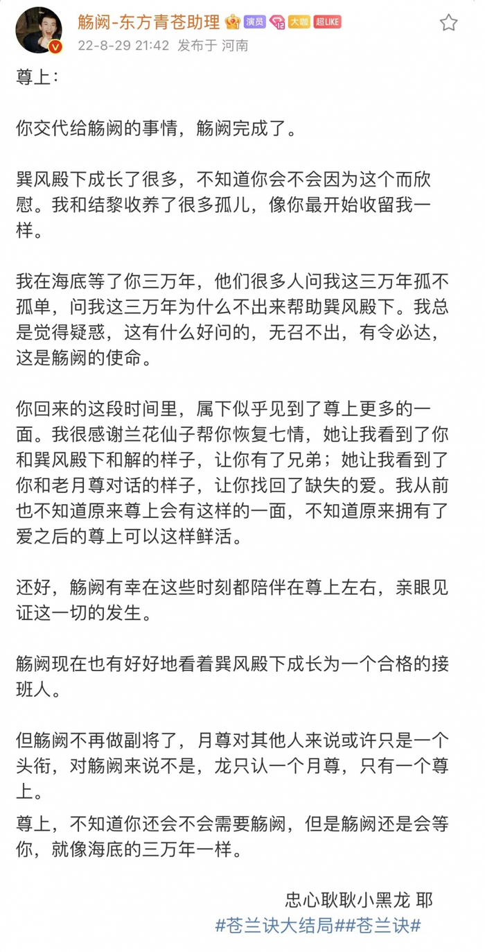 昨天,《苍兰诀》迎来了大结局。