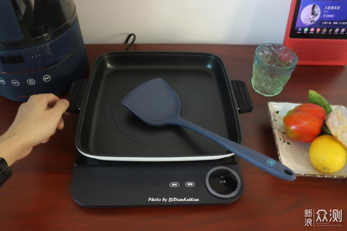 前阵子我不是还给大家秀了一套硅胶餐具4件套嘛,正好给这套锅用。方形的锅边长大概28cm,对比直径28cm的圆形锅,方锅可以盛装更多的食物,做一个大份的菜肴无压力,煎蛋和烤肉齐飞也行,哥们来家里涮锅子也够敞亮。那句话叫啥来着?“颜值就是正义”。