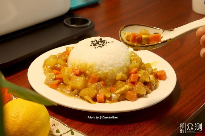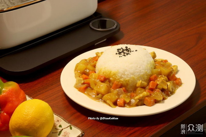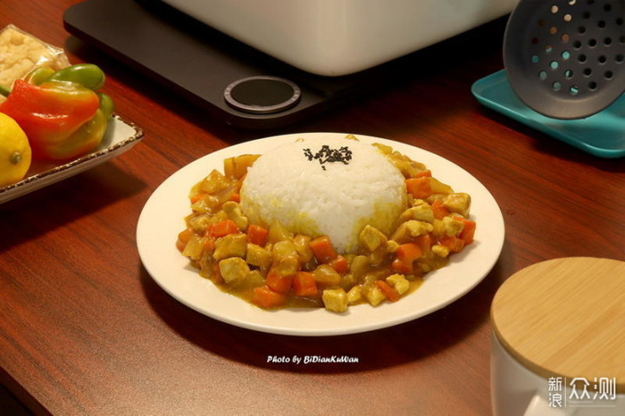 大家好,我是笔点酷玩,今天这篇小文,我不是要秀这一盘咖喱鸡肉饭,而是左上角那个有点抢镜的电磁炉,它来自小米米家。