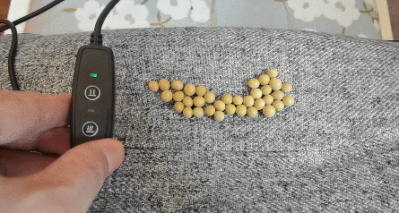 这款坐垫之所以有塑形功能,主要就是因为有两个震动模块,三种震动模式来按摩你的小屁屁,震动之下搭配加热模块使得小屁屁的血液循环更快,提高肌肉的紧实程度从而使得你的小屁股翘翘的!为了展示三种震动力度,我用黄豆给大家做了一个相对比较直观的展示