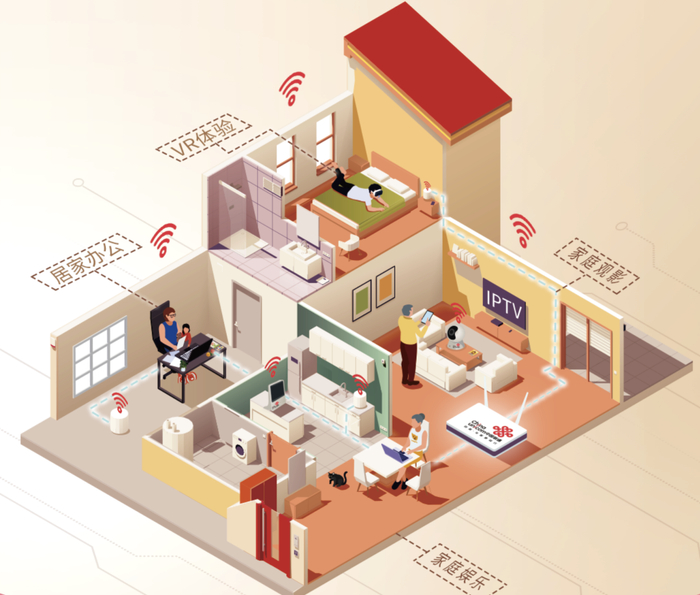 所谓FTTR,就是“光纤到房间”的意思,它是基于FTTH“光纤到户”的进一步演进升级。打个比方,如果将千兆光网视作信息高速公路,FTTH就是将入口修到家门口,而FTTR则将入口进一步修到了房间。