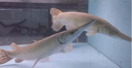 “想要鳄雀鳝?自己看,那边尖嘴的就是。”一位商户说,鳄雀鳝能养多大主要看鱼缸有多大,一般家里自己养的有半米长的。