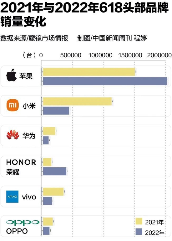 “国内手机市场销量的下滑趋势已经是手机厂商的共识,只是在今年一季度的预判上出现失误。”孙燕飚认为,手机厂商一般会在当年根据正在进行的四季度,对来年第一季度的市场进行预判。“预判今年第一季度市场出货量时,可能原本只打了八折、九折,但是没有想到疫情因素,外加华为5G芯片库存消耗殆尽后,iPhone 13的热销周期远超预期,导致预判出现更多偏差。”