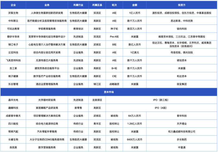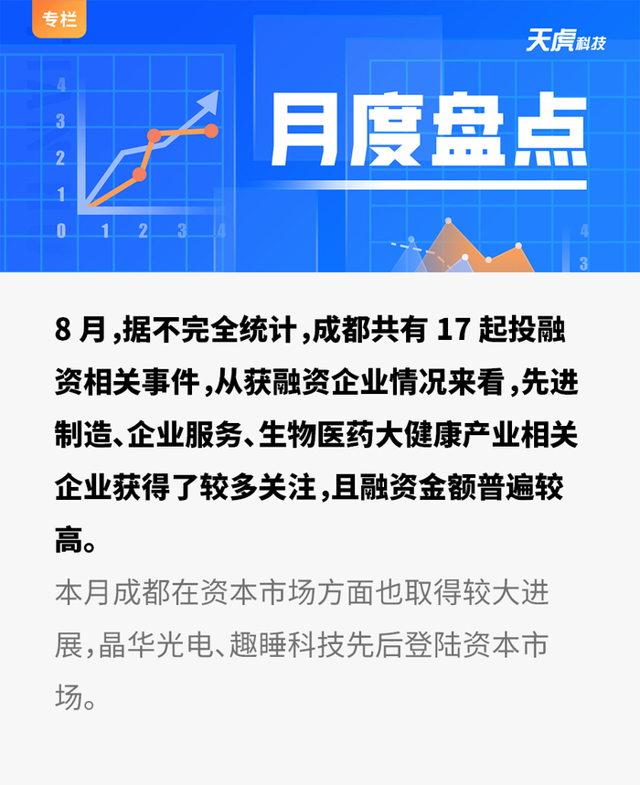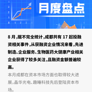 8月盘点:成都重要投融资事件及产业环境数据汇总