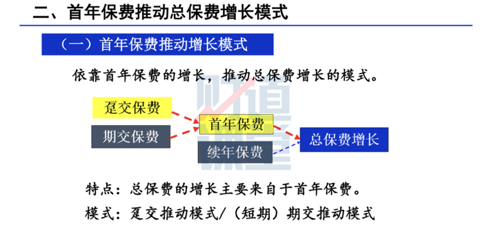 1、首年保费推动增长模式