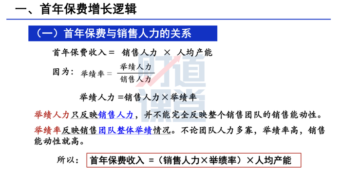 首年保费收入=销售人力×人均产能,