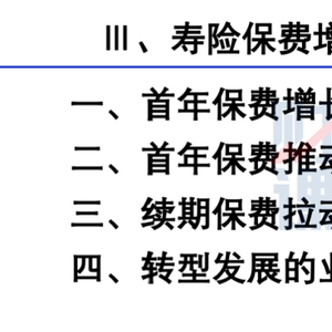 发展成熟的市场,受保险覆盖面较高的影响,首年保费增长会很难。但按照寿险首年保费是第二年续年保费增长的主要因素,即使首年保费不增长,通常续年保费也一定增长,除非进入交费周期。续保率越高,续年保费增加就越多。所以,寿险公司发展到一定阶段,总保费的增长主要来自于续期保费的增长。