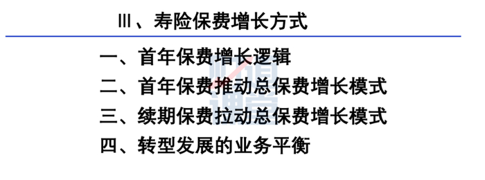 保费增长模式部分主要讲述4个方面:首年保费增长逻辑、首年保费推动总保费增长模式、续期保费拉动总保费增长模式、转型发展的业务平衡。