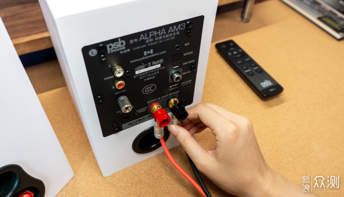 接口方面,PSB Alpha AM3提供的确实相当全面。主音箱背后不仅提供了常规的AUX模拟输入和唱机RCA输入,还支持aptX蓝牙连接、Micro USB和光纤输入,足以应对各种环境。再加上还配有低音输出插孔,后续可以通过外置低音炮来感受2.1声道系统的魅力。