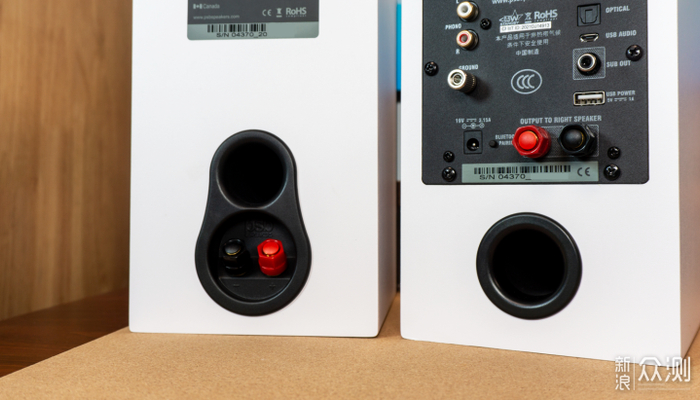 值得注意的是,箱子后背下端设有传统的低音导流孔,在摆放时需要注意不要太靠近墙体,避免造成声音发闷,减少低音量感。