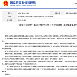 藿香正气水作为太极集团旗下有较高知名度的一款解暑中成药被广泛熟知,但8月29日,国家药品监督管理局发布的《国家药监局关于20批次药品不符合规定的通告(2022年第39号)》中显示,太极集团四川南充制药有限公司生产的藿香正气水(批号:2021013,2021046)甲醇量检测不符合规定。