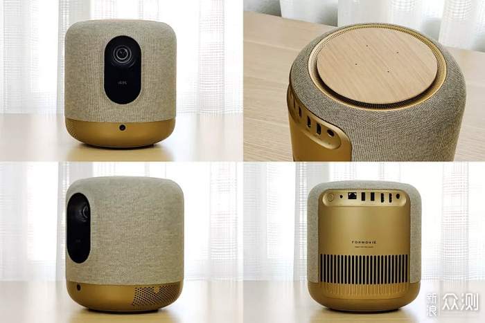 峰米V10圆柱造型百搭各种家装风格,值得注意的是,它的底部没有预留螺丝孔,只能桌面正投。