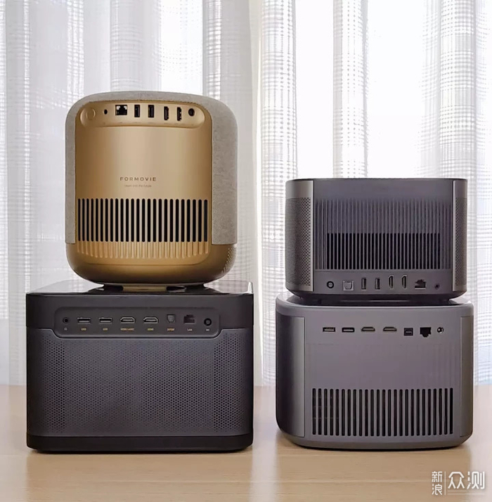 四台投影仪的外观各有千秋,峰米V10的设计更居家更有美感,极米H3S的金属质感更强,当贝X3科技感更强,坚果J10S最小巧。