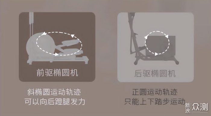 ▼除了运动体验长的差异之外,长期训练的效果也完全不同。仔细观察运动轨迹就会发现前驱椭圆机的运动轨迹是一个椭圆他会使你的双腿向后蹬发力,从而动用到更多臀部的力量,而后驱椭圆机的运动轨迹是一个正圆,双腿大部分时间是直上直下,锻炼到的更多是大腿两侧肌肉,所以小伙伴们如果要专注练习翘臀的话一定要注意选择一台前驱椭圆机。