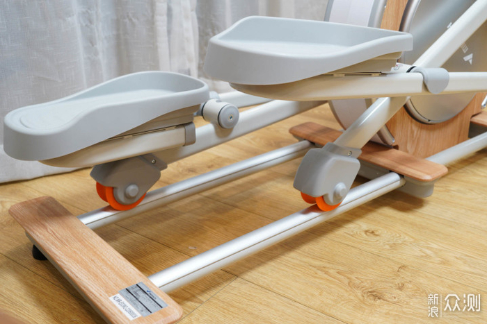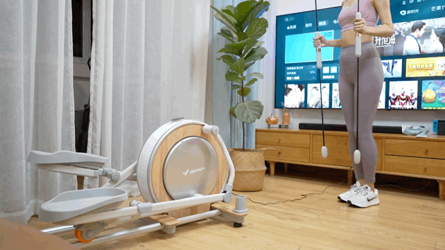 ▼这款椭圆机最大的特点就是充分考虑到了家用这一属性,整台机身占地只有0.7㎡,平时不论是放在客厅还是卧室都不会占用很大空间,即使是小户型也完全能够hold住。白色和原木色相间的配色清新简约,整个机器看起来也十分轻盈,跟健身房里傻大黑的商用机形成了鲜明的对比,即使没有专门用来放置器材的房间,也不会觉得突兀,颜值方面真的没有什么可以挑剔的。