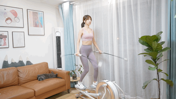 ▼在踏行的过程中,整个体验是非常流畅丝滑的,有种漫步在云端的感觉,而且机身虽然很小,但却十分稳定,即使是在hiit这样的训练强度下,也丝毫不会出现晃动感。