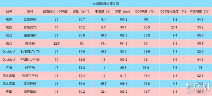 先来看我自行检测的物理性能参数,尽可能参考国标,其中平滑度相对随便测测,其它除了抽样方法,均按复印纸标准引用的国标方法进行检测。