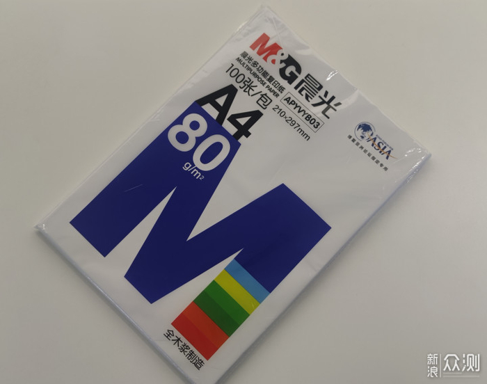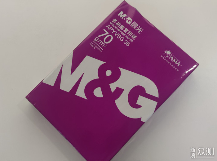 晨光的产品线以颜色区分,购买了爆款的紫晨光70g复印纸,官方数据定量70,厚度不明,不透明度95,采用了AKD施胶技术。