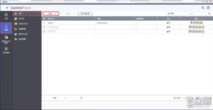 首先在NAS系统里的控制台里面点击权限,在用户这一栏,给需要使用NAS的同事建立好账户,设置好密码和对应的文件夹权限。