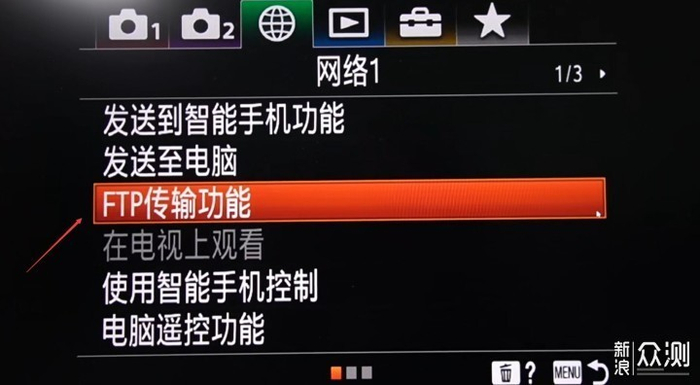 回到相机设置,首先得确保自己相机的网络和NAS是在同一网络下的,然后点进去相机FTP传输功能,选择FTP服务器的选项改成FTP服务器1,接着进入下方的FTP服务器1的选项。