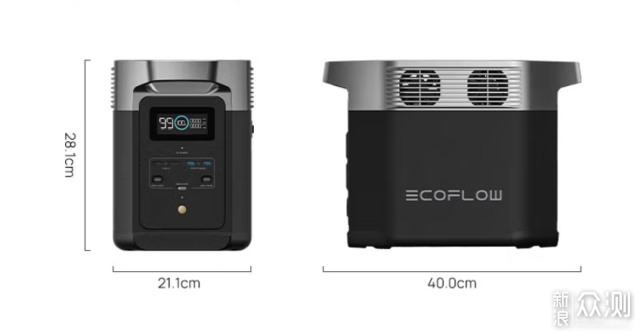 德DELTA 2户外电源尺寸适中,长40CM宽21.1CM高28.1CM,重12kg。双手端起来不费力,放营地车里尺寸刚刚好。