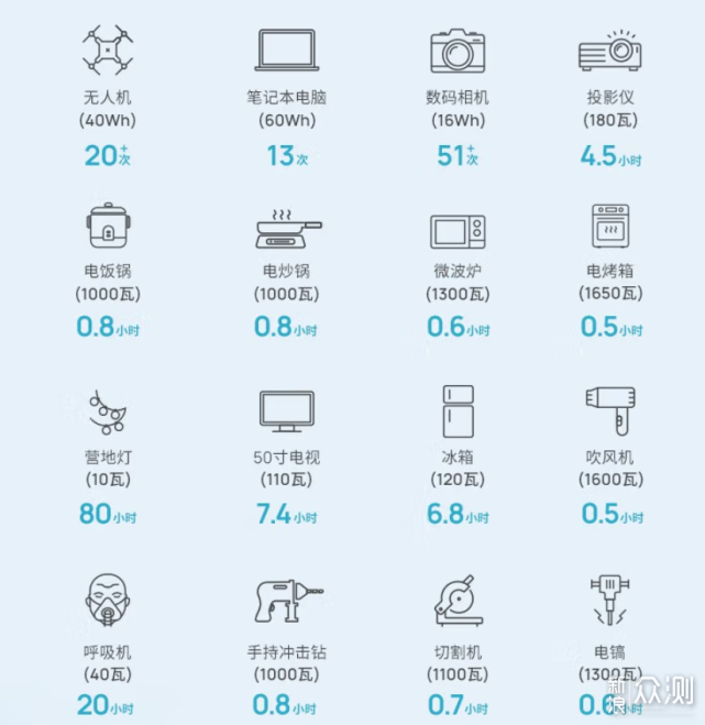 DELTA 2户外电源采用经久耐用的1024Wh大容量磷酸铁锂电池,1800W的大功率输出同时支持X-Boost智能逆变技术可驱动2400瓦的加热类设备。采用UL认证的汽车级电芯,参数不虚标拥有更长的使用寿命。大家可以参考下面这个图,电源充满一次电真的可以干很多事情,露营将更加丰富有趣。