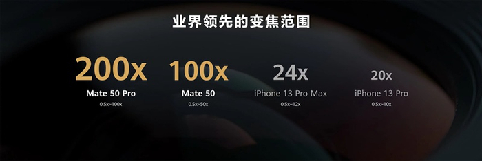 Mate50系列主摄拥有目前业界最大F1.4光圈,可实现亚毫米级分割精度,虚化更自然;配合RYYB传感器,感光能力提升24%;结合精准的人像分割计算能力,带来渐进有层次的光学级虚化。同时,Mate50系列搭载潜望式长焦摄像头,Mate50支持100倍变焦范围、Mate50 Pro支持200倍变焦范围。Mate50系列还搭载了全新的广角微距摄像头,支持2.5cm超级微距拍摄。其前置的超大广角影像系统,支持78°~100°智能可变,更大视野带来更多精彩。