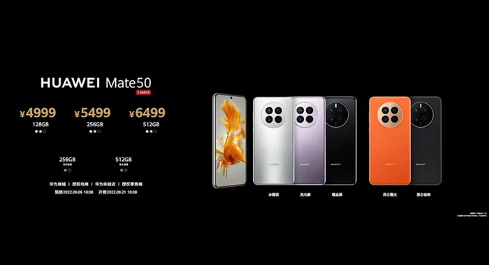 价格方面,华为Mate50售价4999元起,华为Mate50 Pro售价6799元起,9月6日18:08开启预售,9月21日10:08正式开售。华为Mate50 RS保时捷设计售价12999元,9月21日10:08正式开售。华为Mate50 E售价3999元起,10月开售。